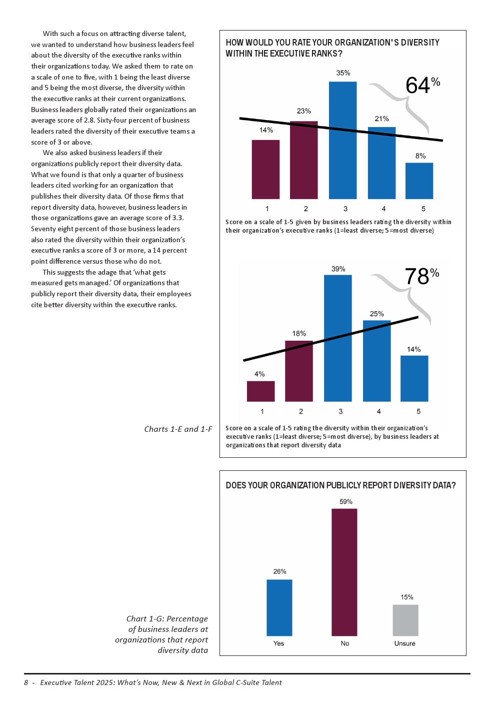 全世界的企业领导者对其企业高管人员的多样性的评价较高,但在公开报告其多样性数据的企业中则更好。